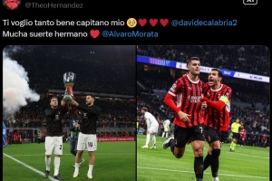 特奥社媒配文写道:“我是如此爱你,我的队长卡拉布里亚,也祝我的兄弟莫拉塔未来好运!”