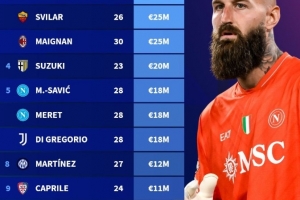 体育资讯10月9日讯 德国转会市场公布了意甲门将最新身价情况,卡内塞基、斯维拉尔和迈尼昂以2500万欧并列最高。