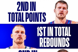 全能战士!约基奇过去5年总得分&助攻第2 总篮板&抢断第1