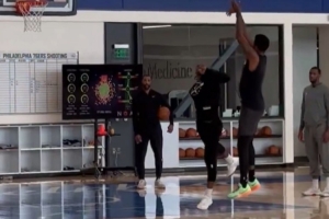 依旧丝滑!乔治训练中玩1V1 连续在乌布雷马克西头上完成干拔