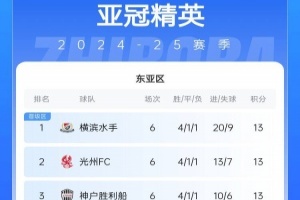 最新亚冠精英联赛积分榜如下↓