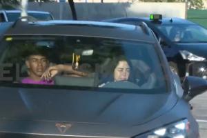 亚马尔女友妮基·妮可今日开车送男友前往巴萨基地训练,据此前报道,18岁的亚马尔仍在学驾照。