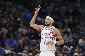 此役,布克出战46分半,投篮18中9,三分8中3,罚球14中13,得到34分3篮板4助攻。
