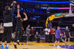 调皮😂!东契奇赛前热身:来防我呀!然后调高弧度三分空心命中