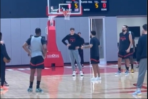 是真的想念你!范弗里特指导球队挡拆训练 腿上未带明显护具