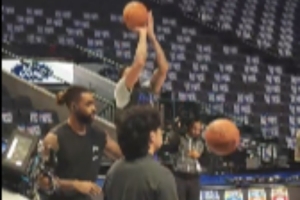 哥俩好!小吧现场观看独行侠赛前热身 浓眉和拉塞尔一起练投篮