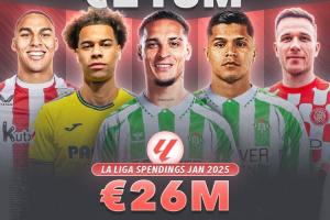 体育资讯02月05日讯 2025年冬季转会窗关闭,西甲成为欧洲五大联赛里支出数字最低的联赛,他们支出的转会费甚至不及英超的零头。