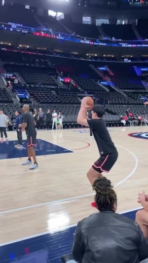 👀今天能进首个三分吗?杨瀚森热身三分训练手感柔和只投丢一个