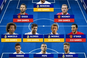前锋:吉格斯(204次)、本泽马(342次)、鲁尼(206次)