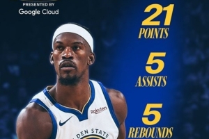 赛后,勇士官推晒出本场最佳球员海报,巴特勒当选本场最佳。