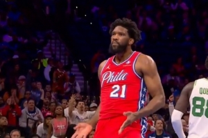 恩比德打进2+1再现大尺度庆祝动作 此前因类似动作已被联盟罚款