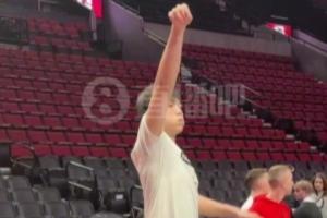 小吧现场观看杨瀚森赛前热身 底角三分效果不错投着投着笑起来了~