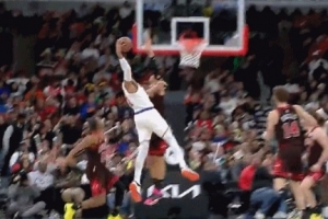 好在无碍!唐斯溜底线试图隔扣武切维奇 扣飞失衡平拍在地