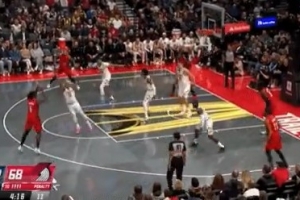外线开炮!朱-霍勒迪撤步三分洞穿篮心 帮助开拓者继续追赶