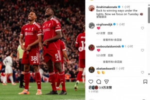 利物浦后卫科纳特赛后也在社媒晒出与进球功臣赫拉芬贝赫的合照,配文写道:“在聚光灯下重新回到胜利轨道,现在专注于周中的欧冠。”