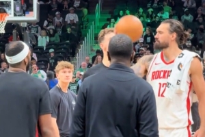 一本正经的海王!申京和奥科吉头球传球玩得正嗨 亚当斯直接抢断