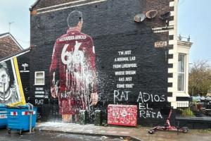 体育资讯11月04日讯 北京时间明天凌晨4点,欧冠第4轮利物浦将主场迎战皇马。赛前,前利物浦后卫阿诺德在利物浦当地的一处著名壁画遭到了球迷的污损。
