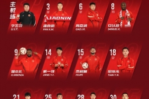 中甲第30轮,辽宁铁人vs佛山南狮首发出炉