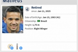 体育资讯1月13日讯 根据德国转会市场球员个人页面显示,曾效力沧州雄狮和浙江队的巴西外援马修斯已经退役。