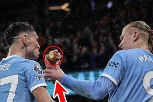 据ESPN报道,多库在比赛中破门之后,哈兰德和福登吃苹果庆祝进球。