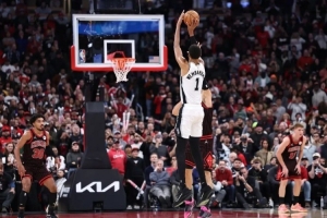 马刺第四节一度落后13分。前三节公牛篮下24投17中。文班亚马只手难遮天。第三节尾声差两分,然而科内特内切、多孙穆罚球、琼斯和史密斯轮流穿刺,马刺篮下被打穿。