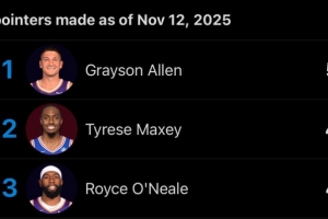 这赛季争三分王?格雷森-阿伦成本赛季首位投进50记三分的球员