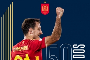 奥亚萨瓦尔在2016年5月29日迎来西班牙队首秀,在对阵格鲁吉亚之前出战49场比赛贡献19球10助攻,帮助球队在去年获得欧洲杯冠军。