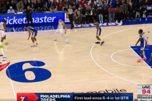 天要亮了!马克西突破欧洲步上篮!76人自开局5-4后首次领先!