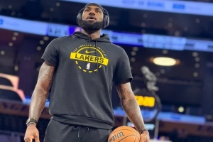 第23季开启!詹姆斯赛前热身练习运球及三分 以自抛自扣结束热身