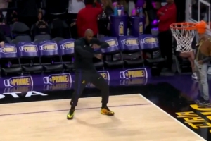 🤣詹姆斯赛前天勾命中 原地扭动跳起摇手舞