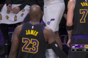 继续找状态!詹姆斯首节剩2分钟再度登场 上来就助攻拉拉维亚三分