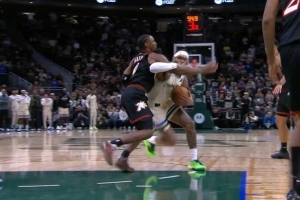 夹手臂了!特伦特进攻犯规 雄鹿挑战失败