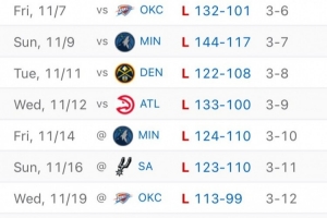 体育资讯11月21日讯 国王今天96比137不敌灰熊,遭遇8连败。