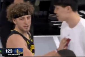 今天没有上场机会!开拓者勇士赛后 杨瀚森在与波杰姆互动时出镜