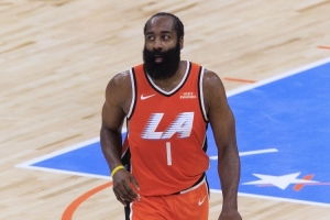 全场比赛,快船球星哈登出战35分钟,26中17,三分16中10得到55分3板7助攻1抢断。