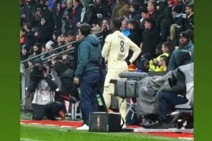 黄牌一张!孔德停球失误被断,放倒上抢的阿兰巴里染黄