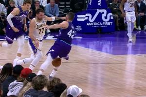 😍太华丽了!东契奇抢断+穿裆乐福+高抛助攻海斯空接炸扣!