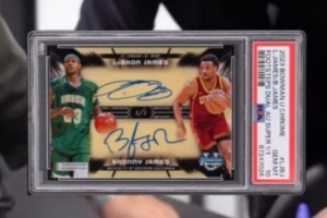 Topps晒詹姆斯父子双签球星卡签名瞬间 此卡二级市场已达11.4万刀