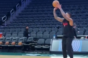 故地重游!利拉德在雄鹿主场三分训练 依旧稳健弹无虚发