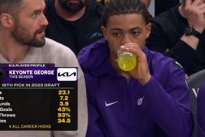 勇士VS爵士转播画面:23年16顺位的乔治各项数据都生涯新高