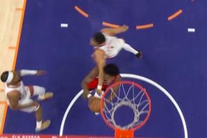 太猛了!阿门冲击内线布克拉都拉不住打进2+1 裁判升级为恶意犯规