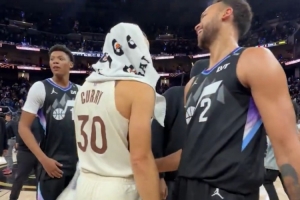 老队友!李凯尔赛后与库里、追梦、小佩顿拥抱互动