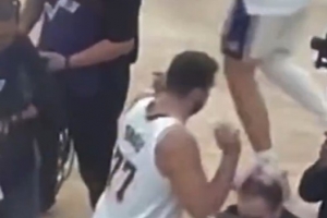 无大碍!杰伦·布朗持球对抗出现崴脚 简单调整后继续作战