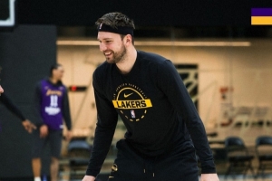 全新造型!湖人官推晒投篮训练照:发带卢卡