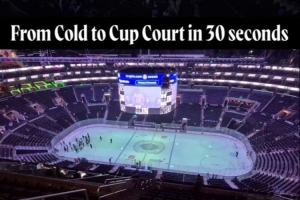 杯赛氛围!湖人官推晒30秒换地板花絮:从冰球场变身篮球场