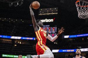 神兵天降!盖耶切入隔着防守球员单臂炸裂补扣