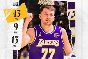 本场比赛东契奇出战38分16秒,28中14,其中三分12中7,罚球11中8,得到43分9篮板13助攻1断1帽,正负值+9。
