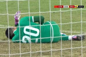 在上半场比赛中,文莱U16门将屡屡倒地示意身体不适,裁判因此给了8分钟的超长补时,在补时阶段中国U16连进3球,将半比分定格为6-0。