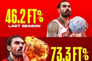 还砍吗?本赛季亚当斯罚球命中率73.3%&生涯新高 上赛季仅46.2%