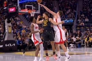 太骚了!库里顶着阿门&申京不看人脑后妙传 理查德后仰压哨中投